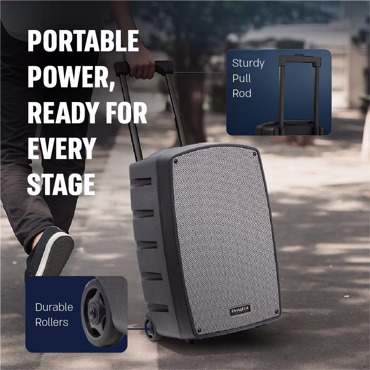 כך שניתן להשתמש בה מחוץ לאולם, בשטח פתוח, בגני אירועים, הפעלות בתי ספר ומפגשי קהילה – מבלי להיות תלויים בשקע חשמל.