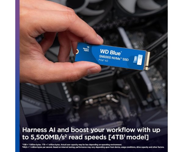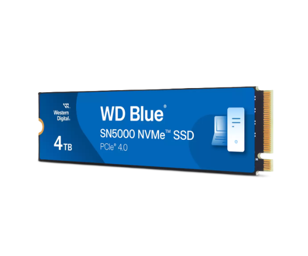 כונן פנימי WD Blue SN5000 בנפח 4TB עם ממשק PCIe 4.0 NVMe לביצועים מהירים ואמינים.