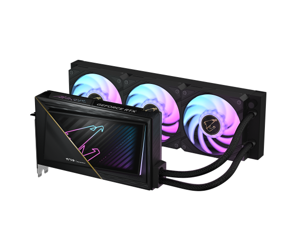 כרטיס מסך AORUS GeForce RTX 5090 XTREME WATERFORCE 32G – כרטיס עוצמתי עם זיכרון 32GB GDDR7, ממשק 512BIT ותדר Boost של 2655MHz. כולל מערכת קירור מים WATERFORCE מתקדמת, 3 יציאות DisplayPort ו־1 יציאת HDMI, תמיכה בעד 4 מסכים וממשק PCI-Express 5.0 x16. דורש ספק כוח 1000W לביצועים מקסימליים.