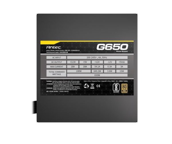ספק כוח Antec ATOM G650 650W – ספק כוח איכותי בתקן 80 Plus Gold עם עיצוב Semi-Modular ומאוורר שקט 12 ס"מ, המספק יציבות וביצועים אמינים למערכות מתקדמות. אחריות ל־5 שנים.