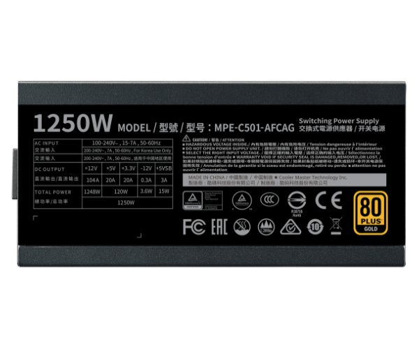 ספק כוח Cooler Master MWE 1250W V2 – ספק כוח עוצמתי ואמין בתקן 80 Plus Gold עם עיצוב Full Modular ותקן ATX 2.52. כולל מאוורר שקט בגודל 14 ס"מ לביצועים יעילים ויציבים גם תחת עומס גבוה. אחריות ל־5 שנים.