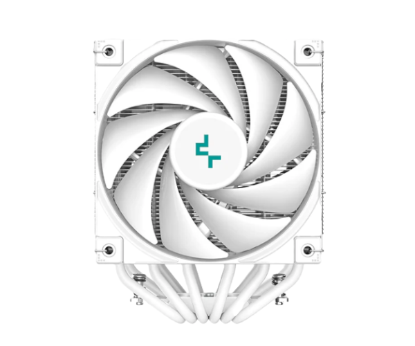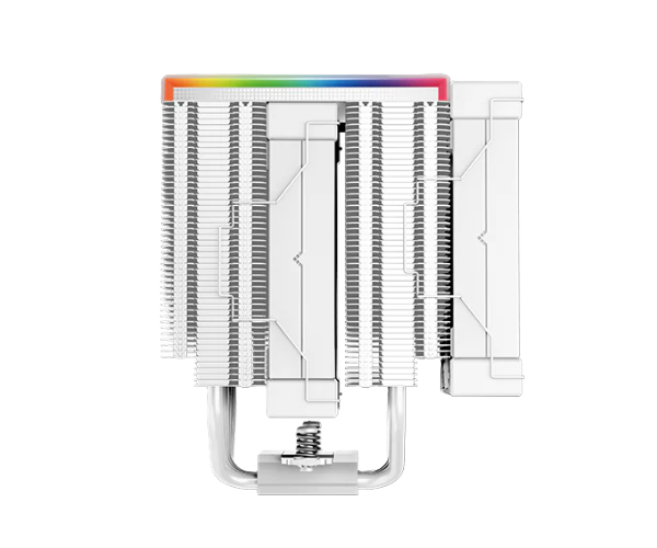 קירור אוויר עוצמתי בצבע לבן עם שני מאווררי 120 מ"מ, תצוגה דיגיטלית ותאורת RGB.