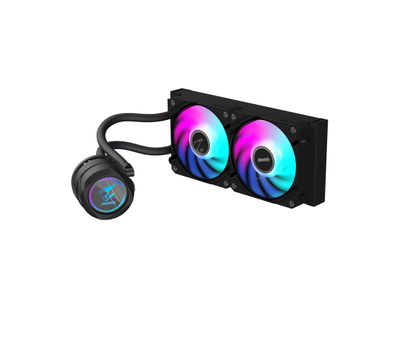 קירור נוזלי AIO 240mm עם 2 מאווררי 120 מ"מ ותאורת ARGB מרשימה.